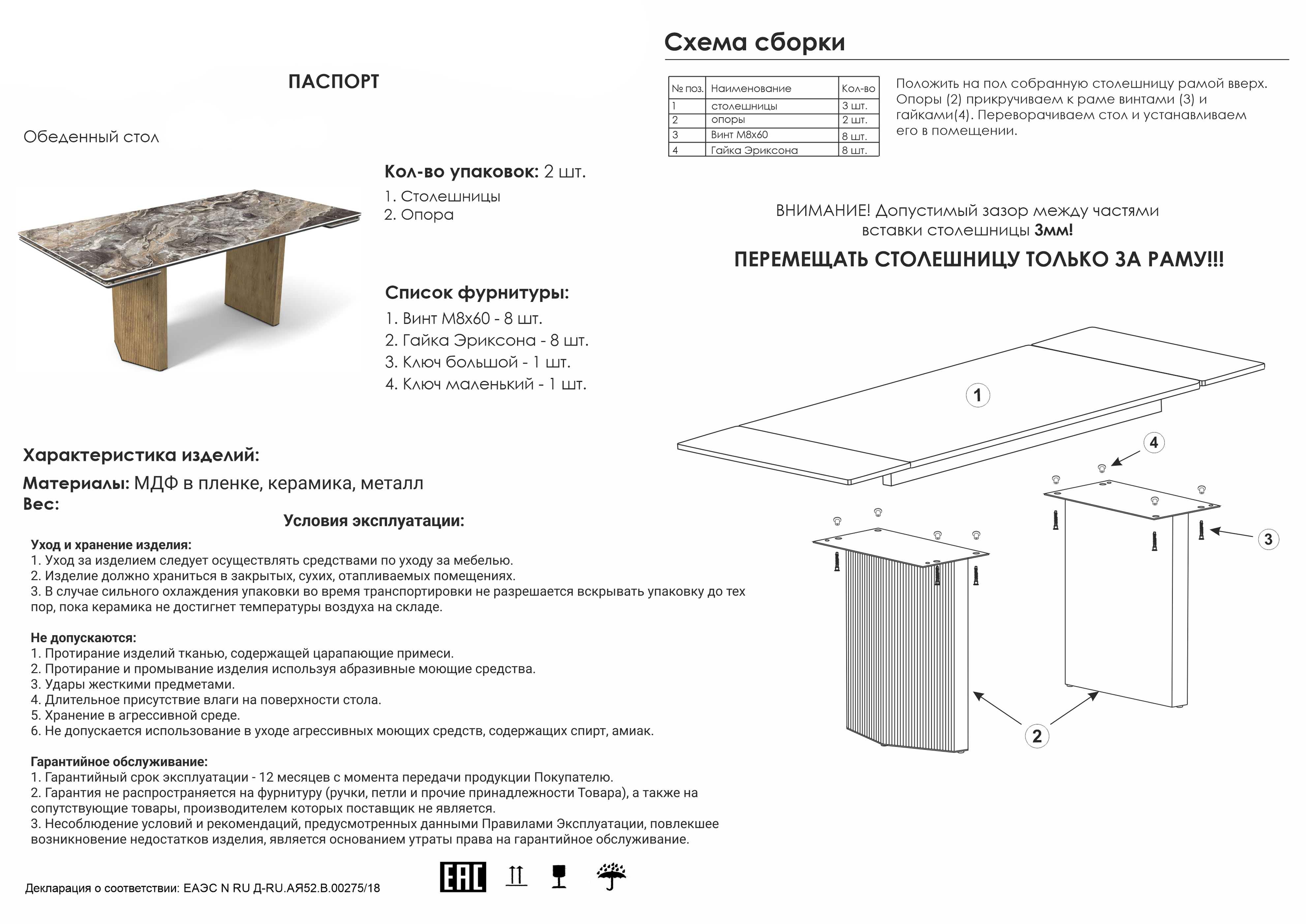 Стол Woodville Монерон 200x100, burberry bianco matt/черный — Инструкция по сборке