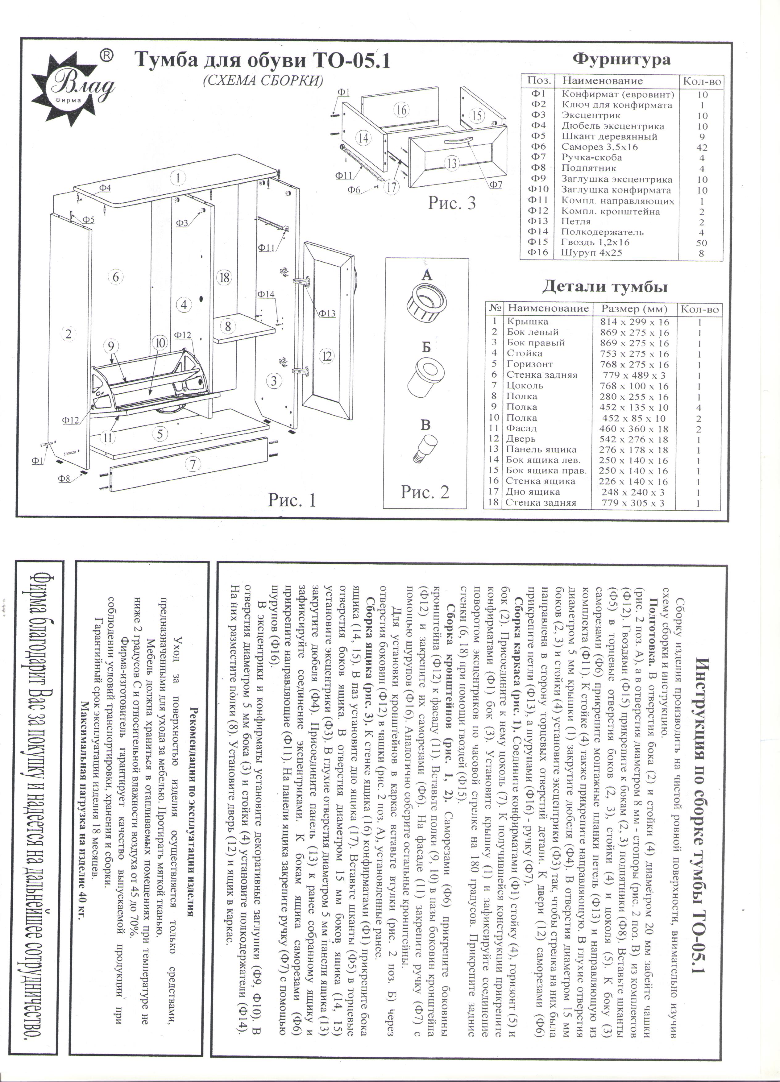 Шкаф для обуви Смоленск МФ ТО-05.1 МДФ — Инструкция по сборке