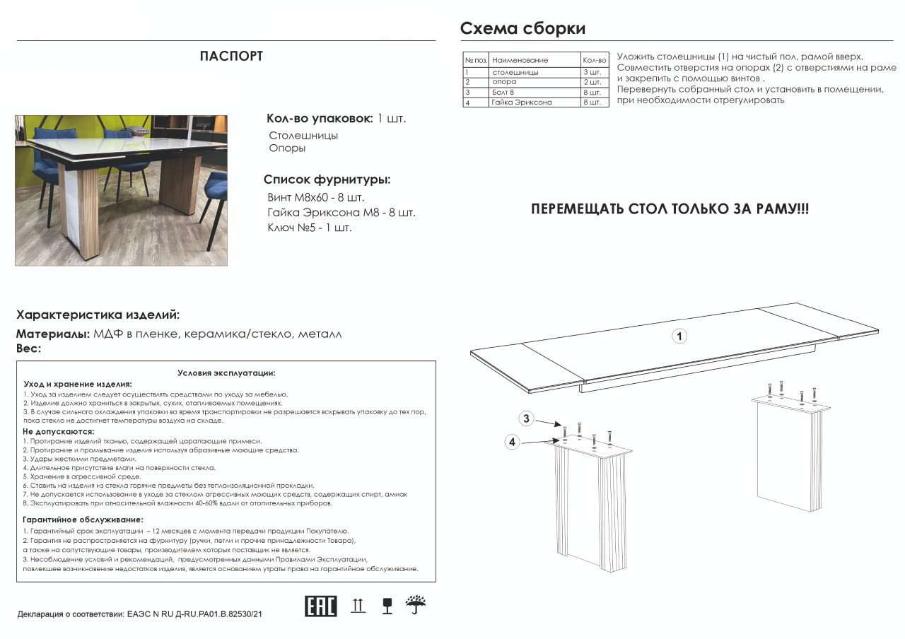 Керамический стол Woodville Бернардо 180x90, черный мрамор/дуб монтана — Инструкция по сборке