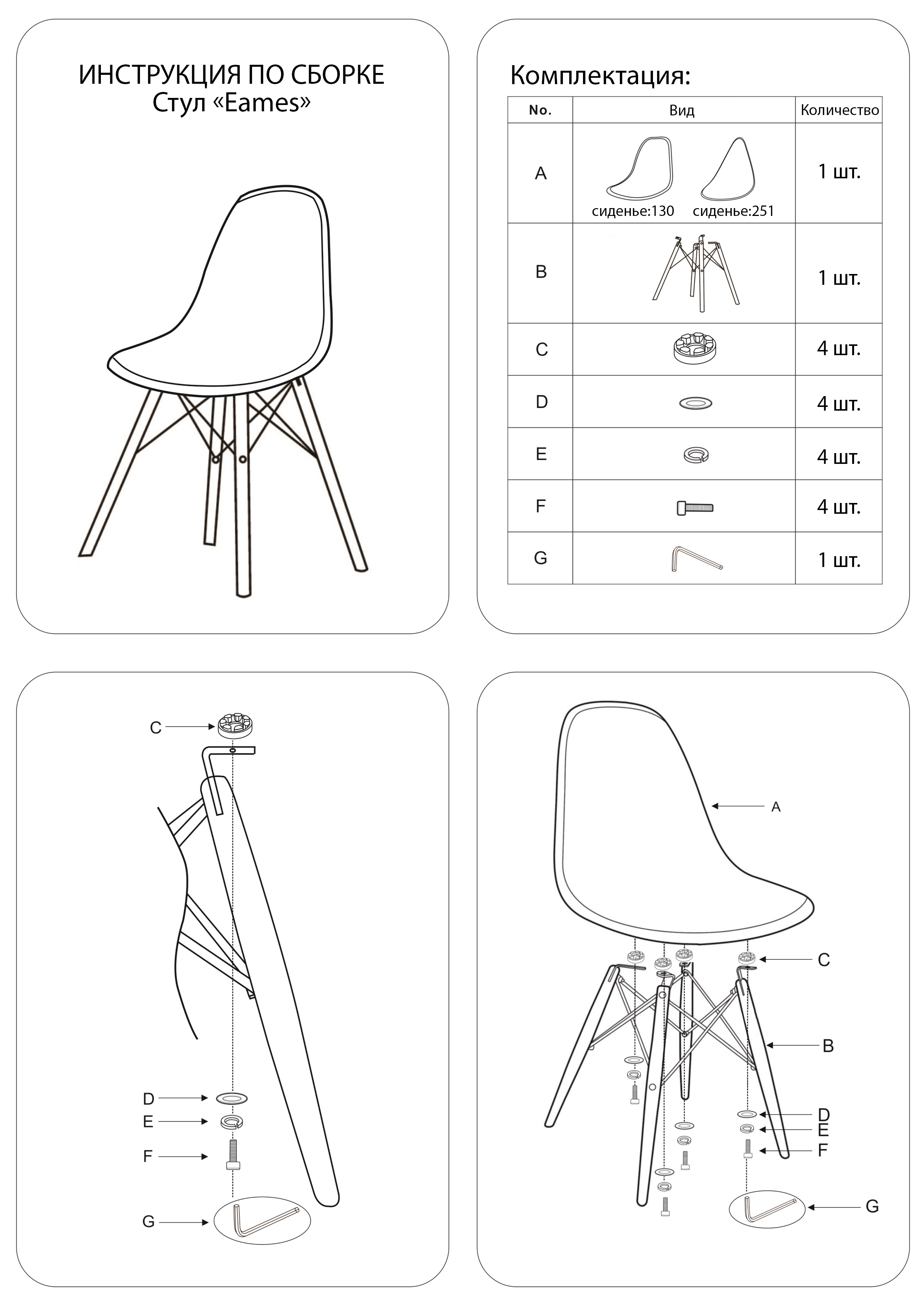 Стул Bradexhome Eames, Белый — Инструкция по сборке