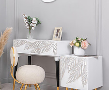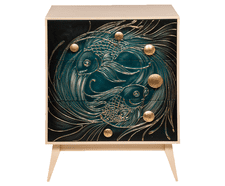 Материалы: корпус - МДФ, фасады - искусственная кожа/ МДФ, фурнитура - латунь.