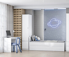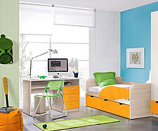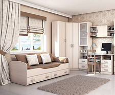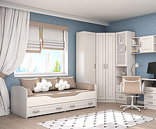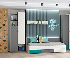 Материал: каркас и настил - ЛДСП, обивка кровати - ткань.