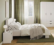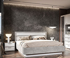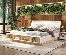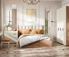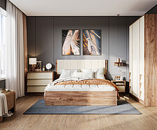 Двуспальная кровать Рейн объединила стильный дизайн и практичность. Вертикальные вставки в изголовье создают уютный акцент и подчеркивают высоту модели. Каркас с ламелями обеспечивает необходимую поддержку для матраса. Мягкая геометрия форм дополняет теплый древесный декор, обеспечивая расслабляющую атмосферу в комнате.