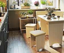 Материал: каркас - ЛДСП, столешница - ЛДСП, обивка - рогожка.