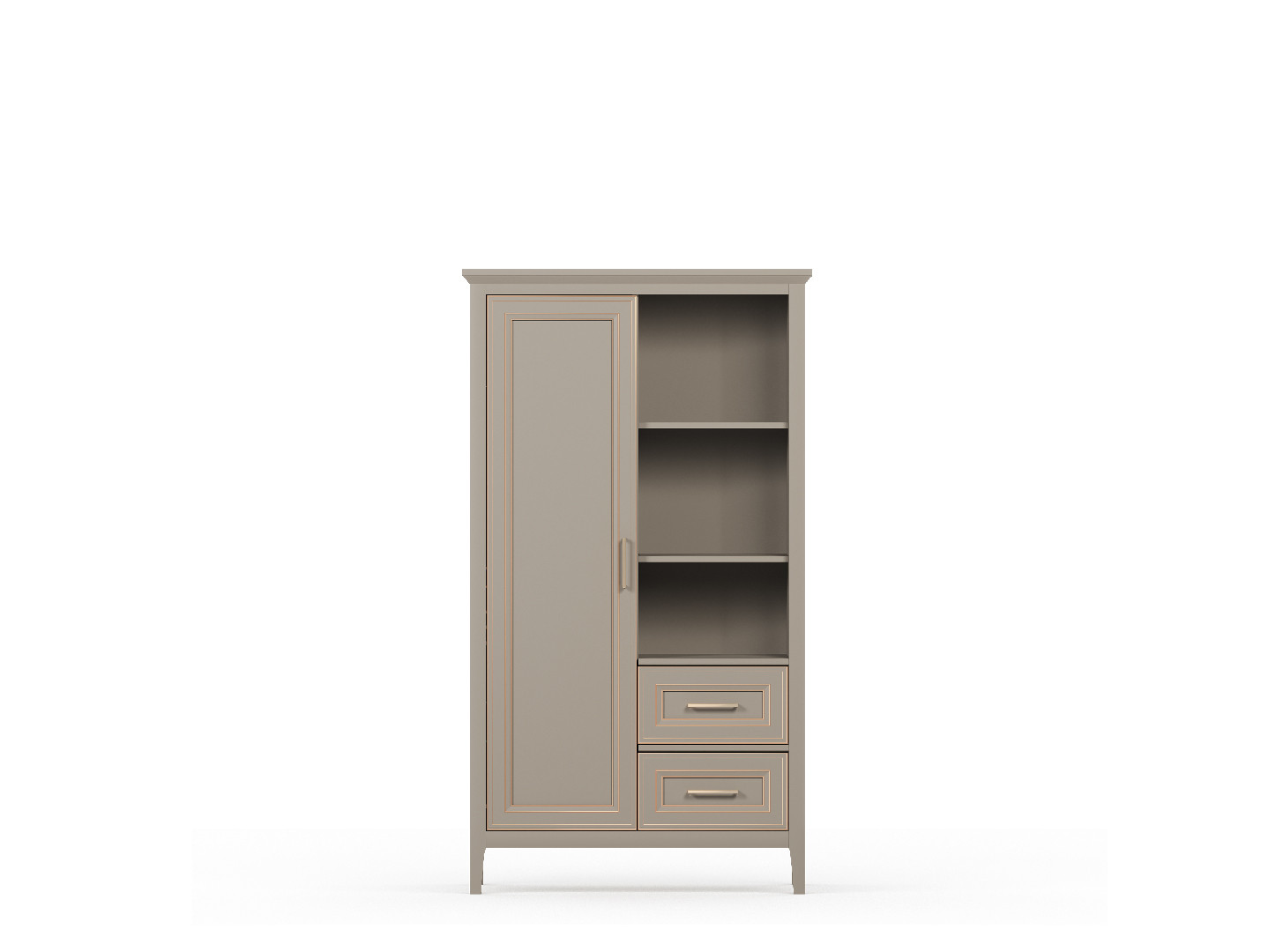 - Рамка фасада из МДФ с изящным рисунком патины придаёт шкафу эффект благородной классики.