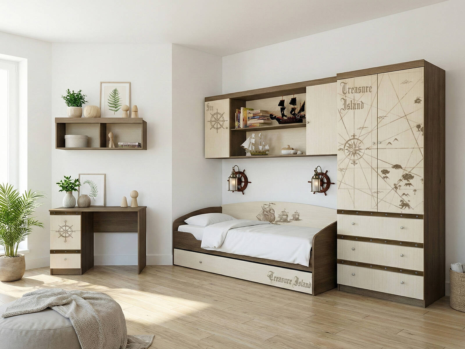 - Декорируйте полки моделями кораблей, глобусами или книгами о путешествиях — это усилит атмосферу приключений.