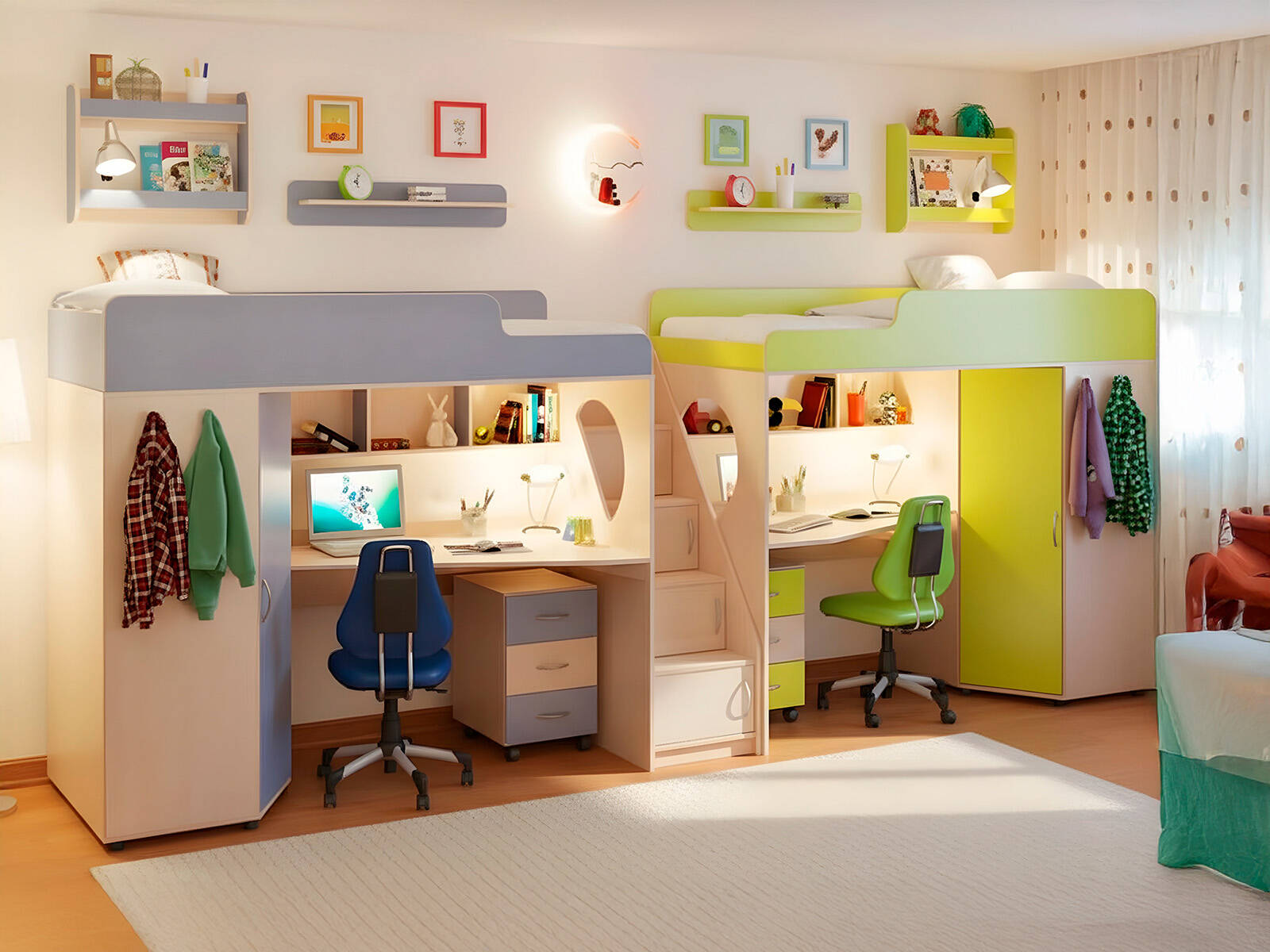 - У каждого ребенка своя учебная зона со столом под спальным местом - возможности для письменных работ.