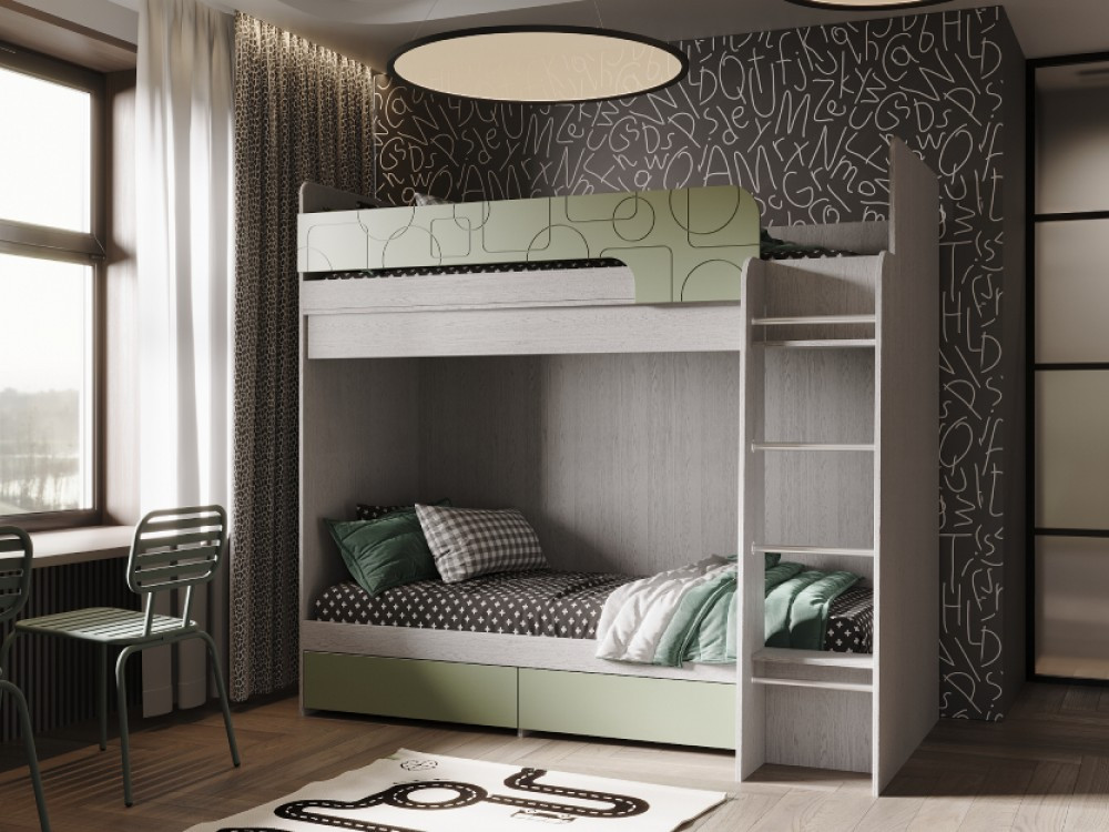 Двухъярусная кровать «Бемби» отлично подойдет для семей с двумя детьми, а также для организации гостевого спального места. Украсьте кровать декоративными подушками, пледами и мягкими игрушками, чтобы добавить уюта. Для хранения мелочей и организации пространства используйте коробки и корзины в ящиках. Кровать гармонично сочетается с компактным письменным столом, открытыми стеллажами и яркими коврами — так легко создать современную и функциональную детскую.