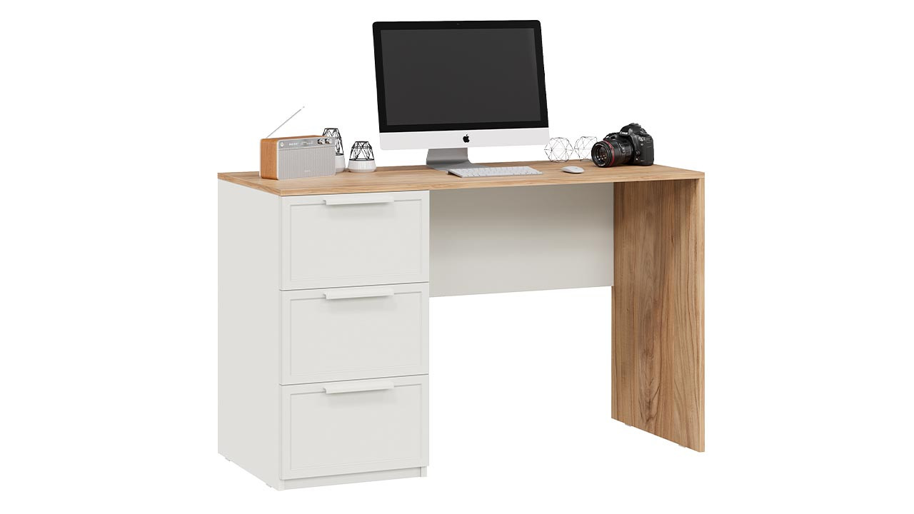Стол прекрасно сочетается с современными настольными лампами, органайзерами для бумаг и стильными стульями в светлой или тёмной обивке. Для декора можно использовать небольшие растения, фоторамки или настенные часы. Ящики удобно организовать с помощью коробок и разделителей — так вы всегда найдёте нужную мелочь или важный документ. Стол Стелла 402.12 Тип 1 легко впишется в интерьер в стиле сканди, минимализм, современная классика или лофт.