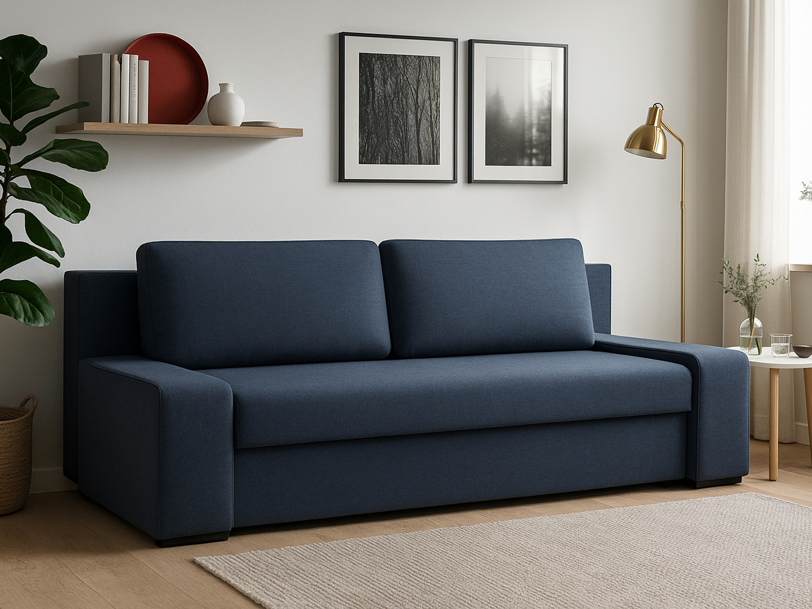 Этот диван отлично сочетается с журнальным столиком на металлических или деревянных ножках, светлыми коврами и минималистичными аксессуарами. Для создания уюта используйте декоративные подушки и пледы в контрастных или нейтральных оттенках. Рядом можно разместить напольный торшер или компактную этажерку для книг и декора. В зоне хранения бельевого ящика удобно разместить коробки или органайзеры для сезонных вещей.