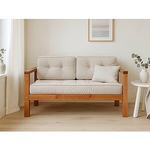 Материал: каркас — сосна или бук на выбор, обивка матраса — ткань, наполнение матраса — ППУ, холлкон.