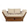 В комплекте с каркасом идёт матрас, две приспинные подушки. Материал обивки — на выбор. Раздвижные подлокотники имеют два положения для более комфортного отдыха, также имеется выдвижной ящик для хранения вещей.