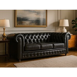 Диван Честер 3-х местный будет гармонично смотреться в интерьере классического стиля.