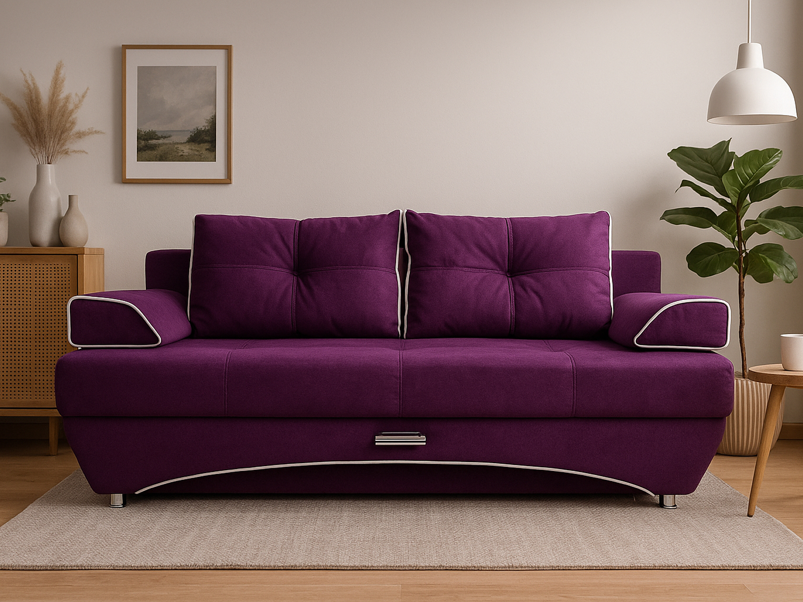 Диван Валенсия имеет удобный механизм складывания "Еврокнижка". Сиденье дивана выдвигается, а спинка опускается вперед, образуя ровное место для сна. Такой диван не составит труда сложить и разложить каждый вечер и утро.