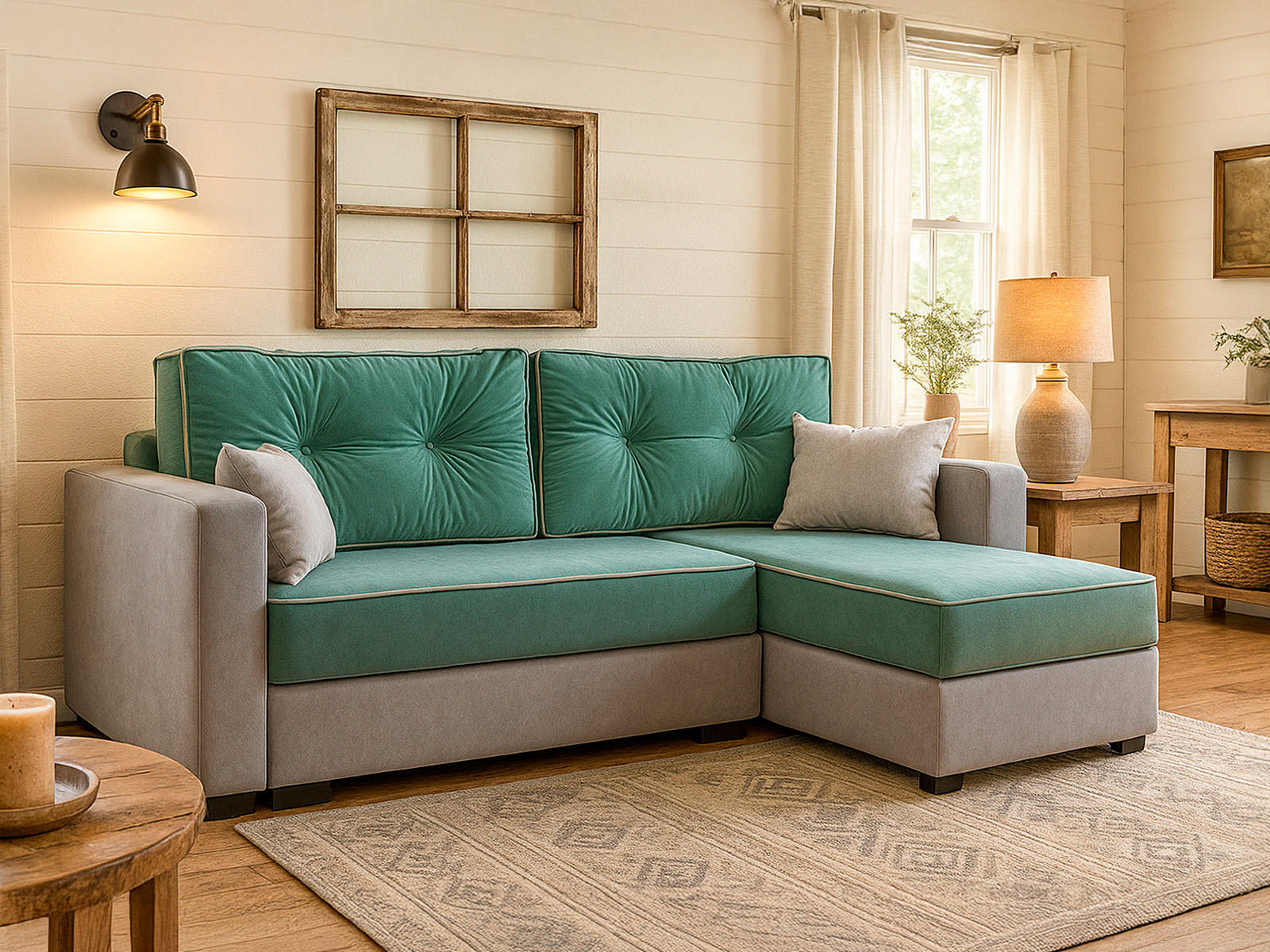 Диван Перс имеет удобный механизм складывания "Еврокнижка". Сиденье дивана выдвигается, а спинка опускается вперед, образуя ровное место для сна. Такой диван не составит труда сложить и разложить каждый вечер и утро.
