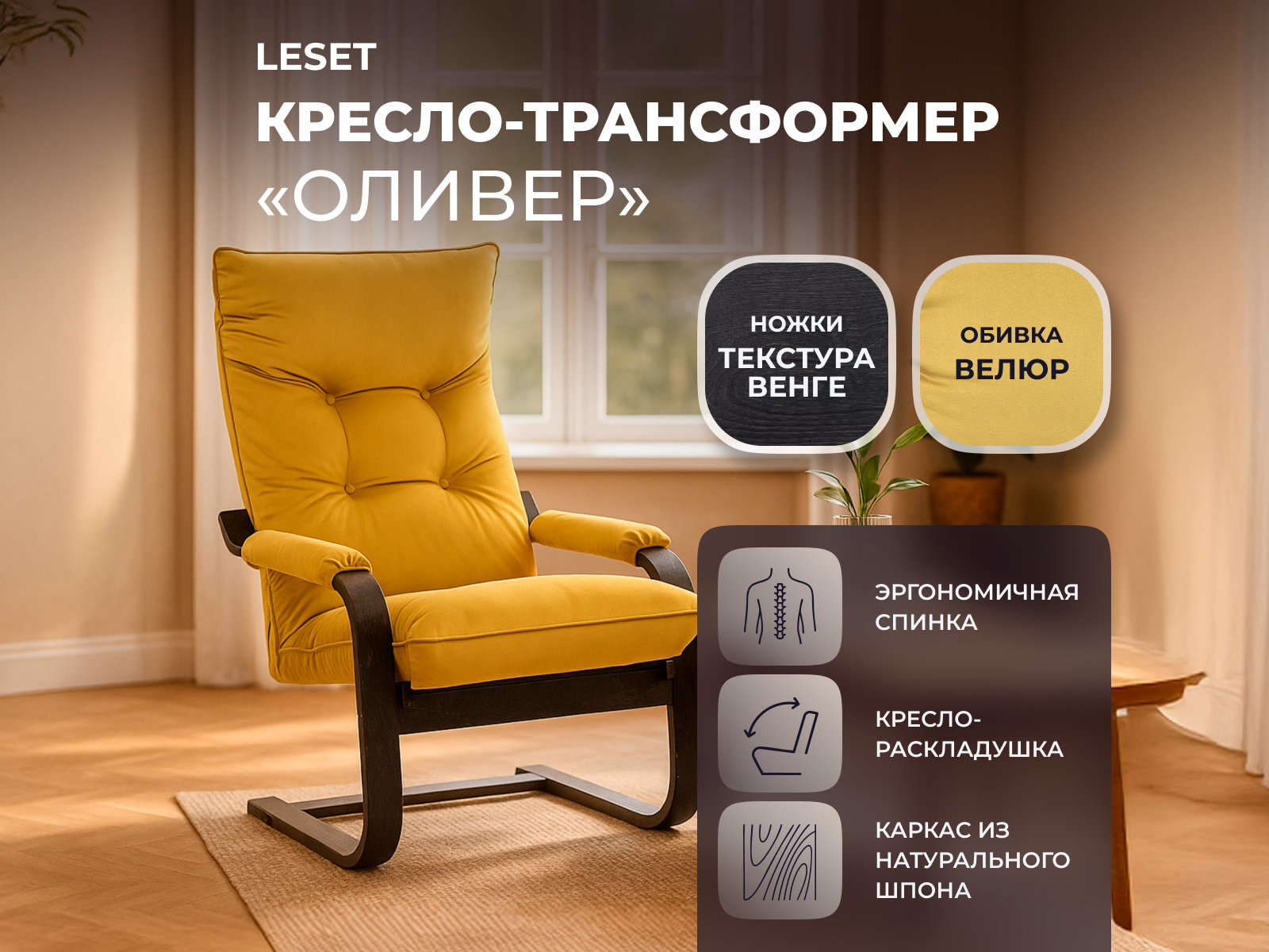 Популярное кресло-раскладушка Оливер украсит гостиную, спальню, прихожую модерн или хай-тек, и станет фишкой зоны отдыха на даче. Гнутоклееные кресла из линейки мягкой мебели Leset узнаваемы по плавным формам и высокой функциональности.