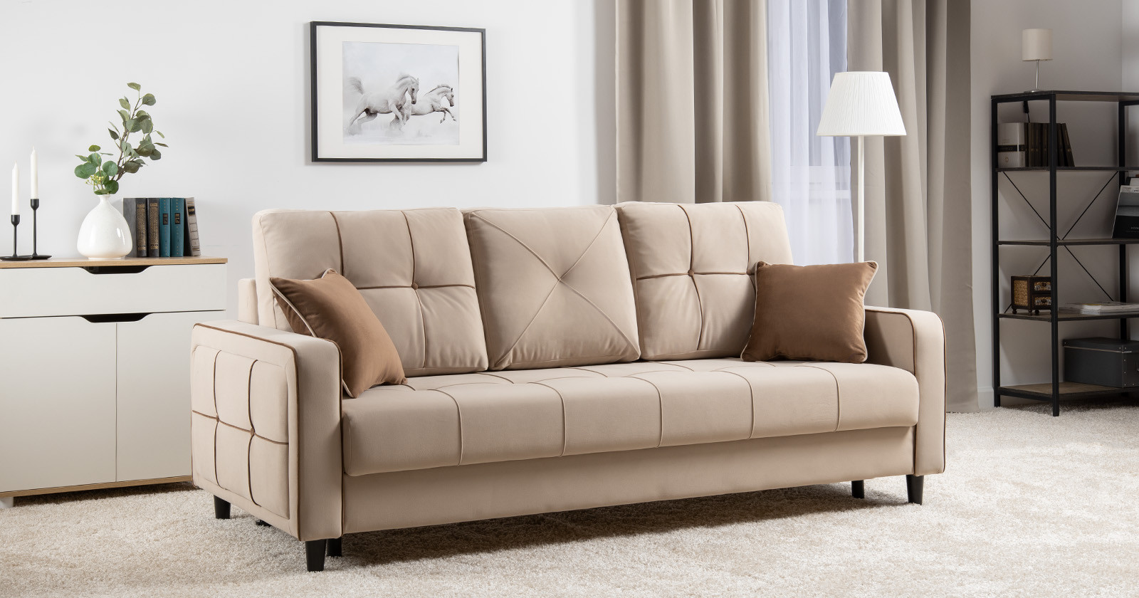 Диван Черри имеет удобный механизм складывания "Еврокнижка". Сиденье дивана выдвигается, а спинка опускается вперед, образуя ровное место для сна. Такой диван не составит труда сложить и разложить каждый вечер и утро.