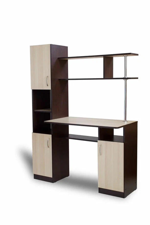 - Стол оснащён несколькими закрытыми секциями и открытыми нишами для организации порядка и хранения.