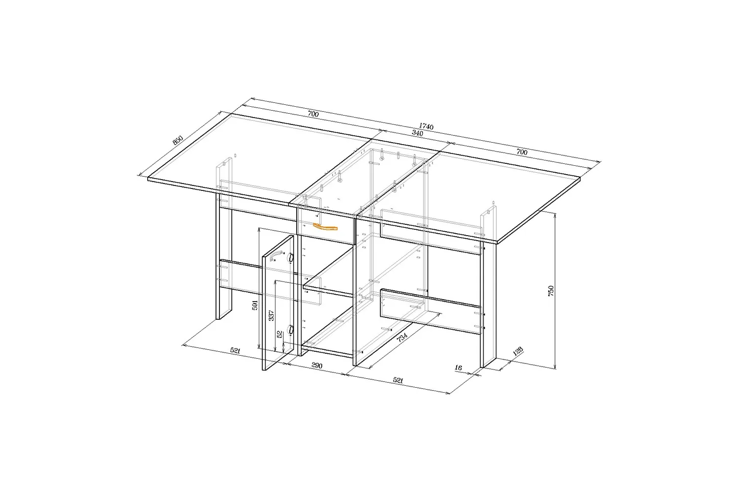 - Складная система позволяет быстро менять размер столешницы под любые задачи.
