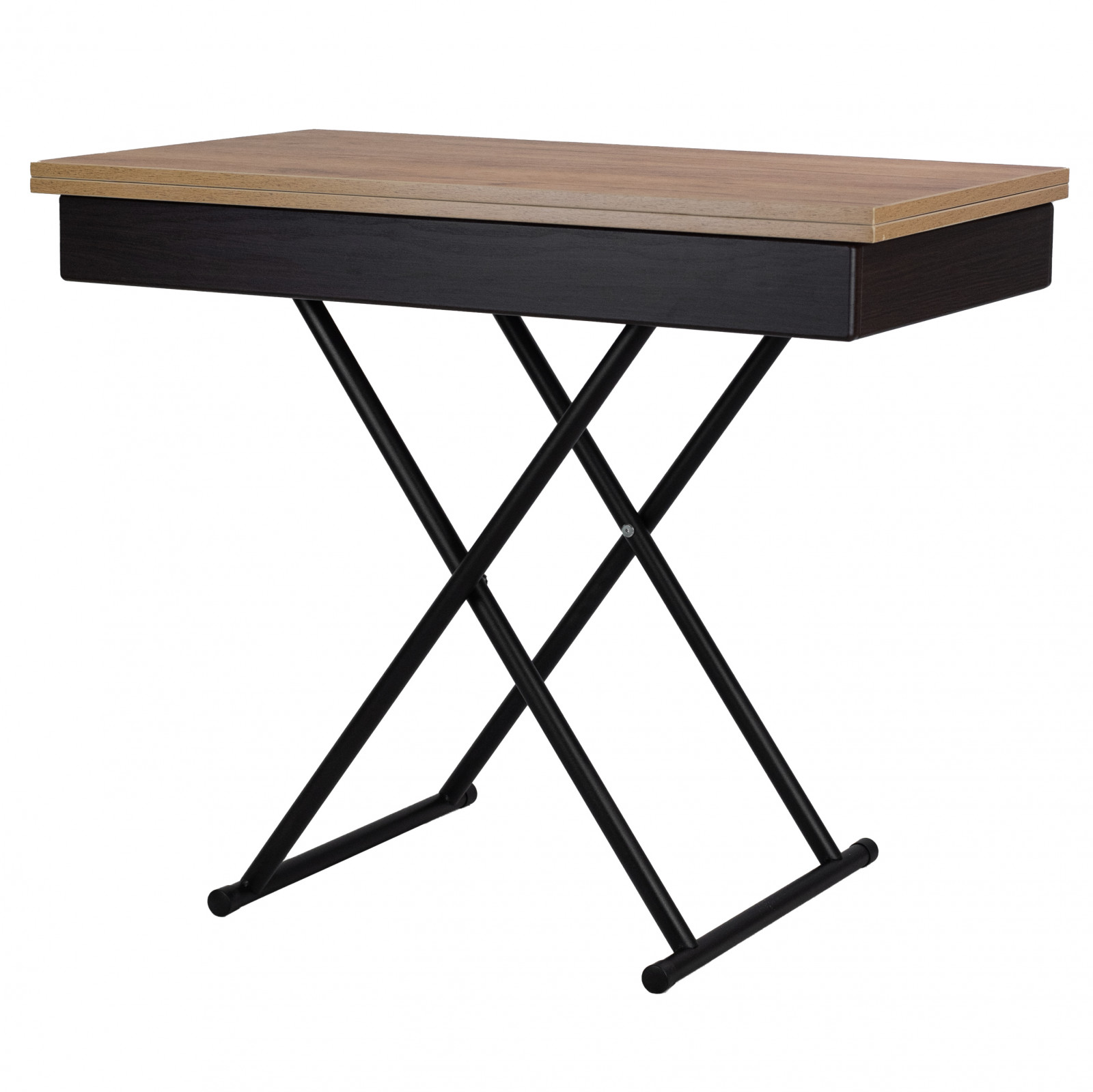 Стол-трансформер Мебелик Лерон — современное и стильное решение для тех, кто ценит максимум функциональности на минимальной площади. Лаконичный дизайн с прямоугольной столешницей под дерево и черными металлическими опорами делает эту модель универсальной для любой гостиной, кухни, домашнего кабинета или даже небольшой студии.