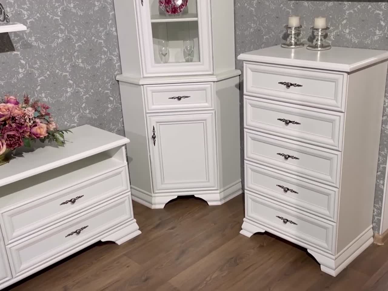 Материал: карнизы и ножки – планка декоративная МДФ. Двери и панели ящиков - рамочно-филенчатая конструкция. Ящики на металлических роликовых направляющих.