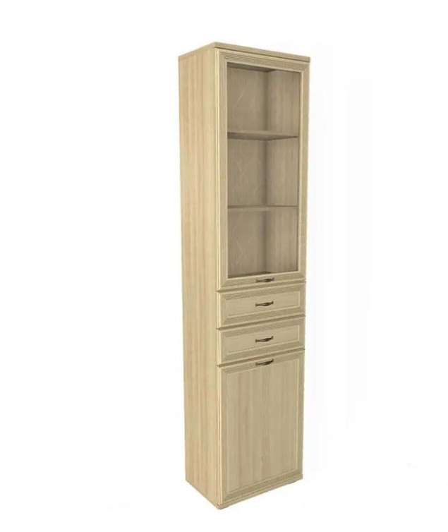 - Верхняя часть оборудована застекленной дверцей и полками для книг, посуды, декоративных предметов или коллекций.