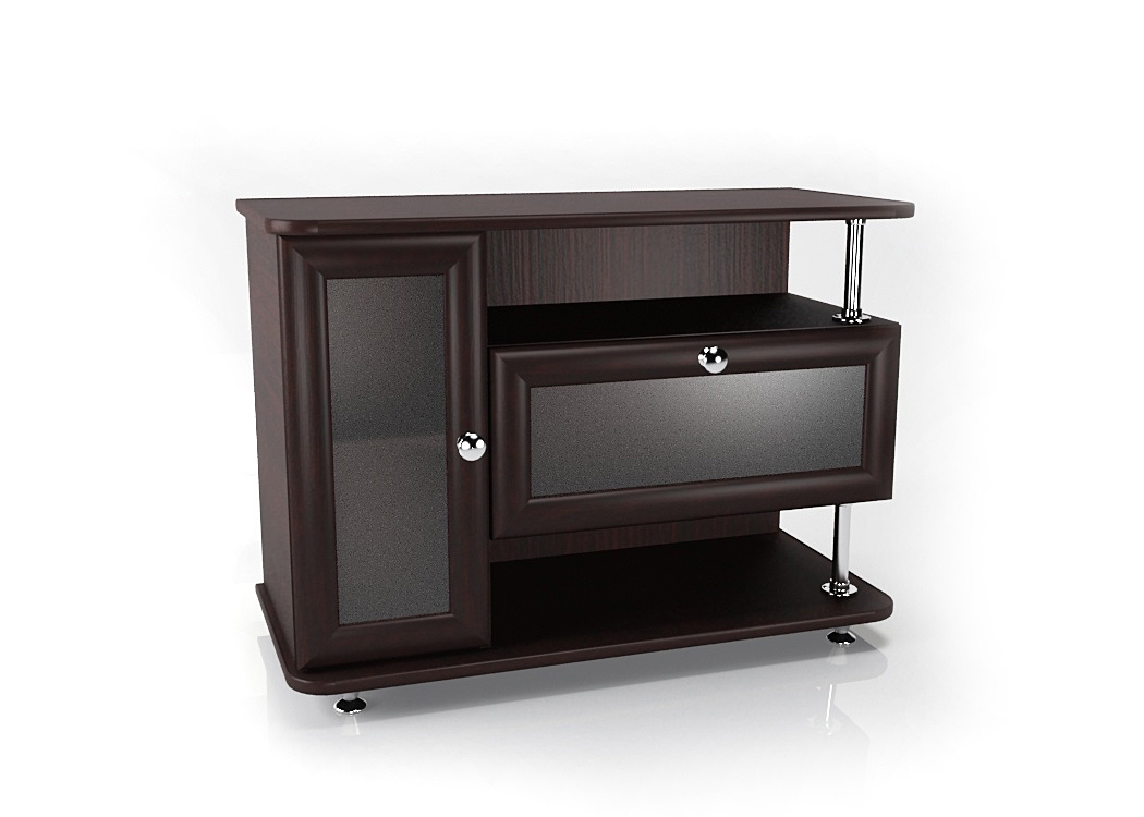 - Оснащена закрытыми отделениями с дверцей и выдвижным ящиком, а также открытой полкой для аудио- и видеотехники.
