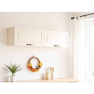 Широкий шкаф навесной с двумя закрытыми отделениями без полок за откидными фасадами - традиция комфортного быта.
