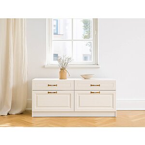 Красивая, широкая тумба с четырьмя выдвижными ящиками на шариковые направляющих - модный стиль и универсальная функциональность.