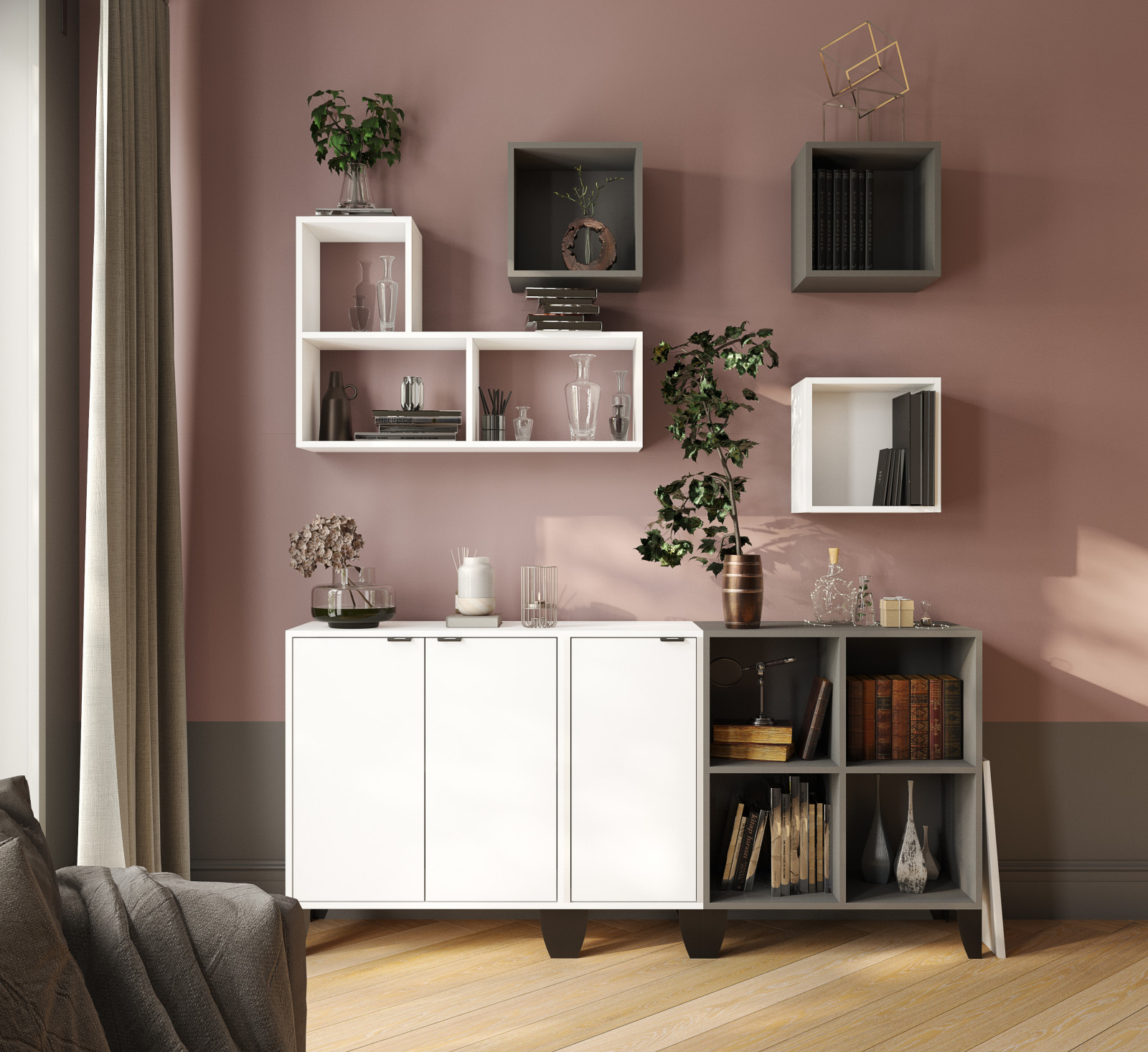 Купить полку ТЭКС Сириния Куб 2, дуб крафт серый/светло-серый