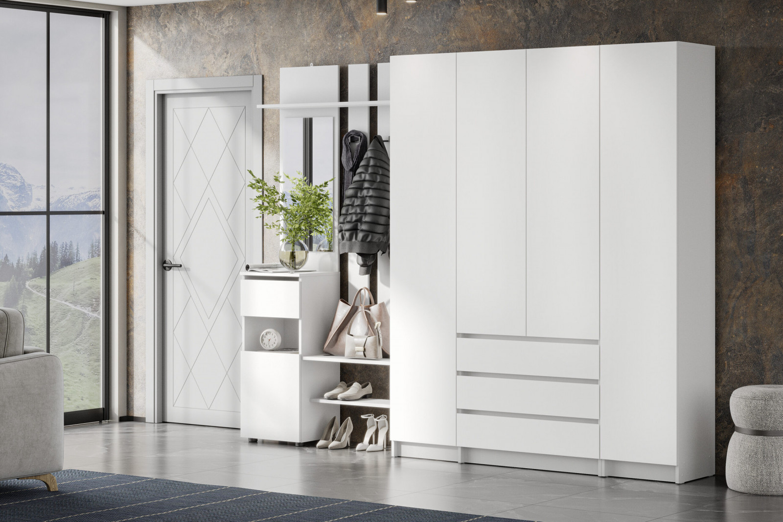 Прихожая отлично подойдет для квартир, загородных домов и современных студий, где важна каждая деталь интерьера. Благодаря универсальному дизайну, комплект впишется как в скандинавский, так и в минималистичный или современный стиль.