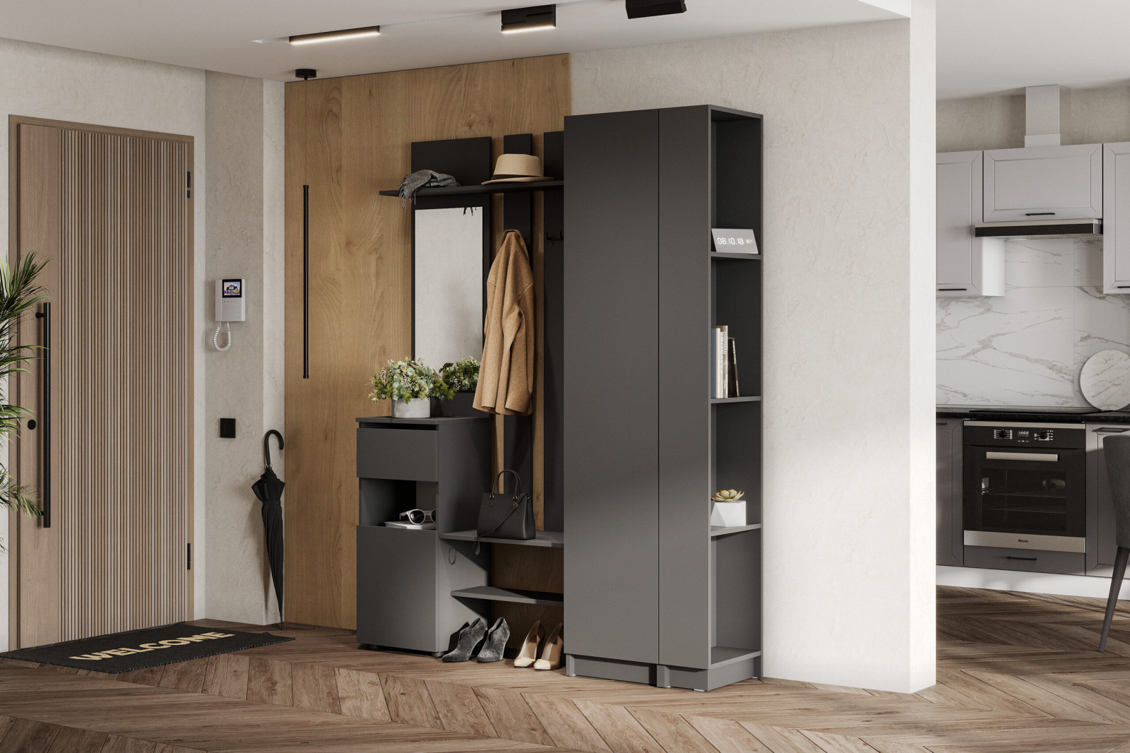 Прихожая Арника Бали, Графит. Комплект 2 — это готовое решение для организации порядка, комфорта и стильного облика вашего дома.