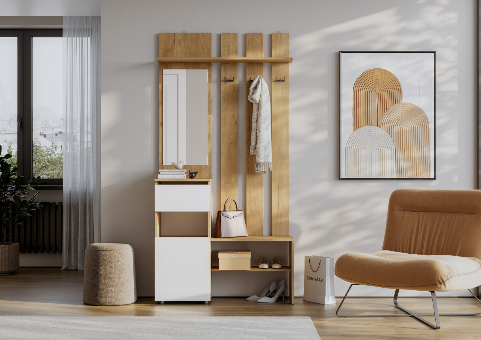 Прихожая Арника Денвер, Дуб Золотой/Белый