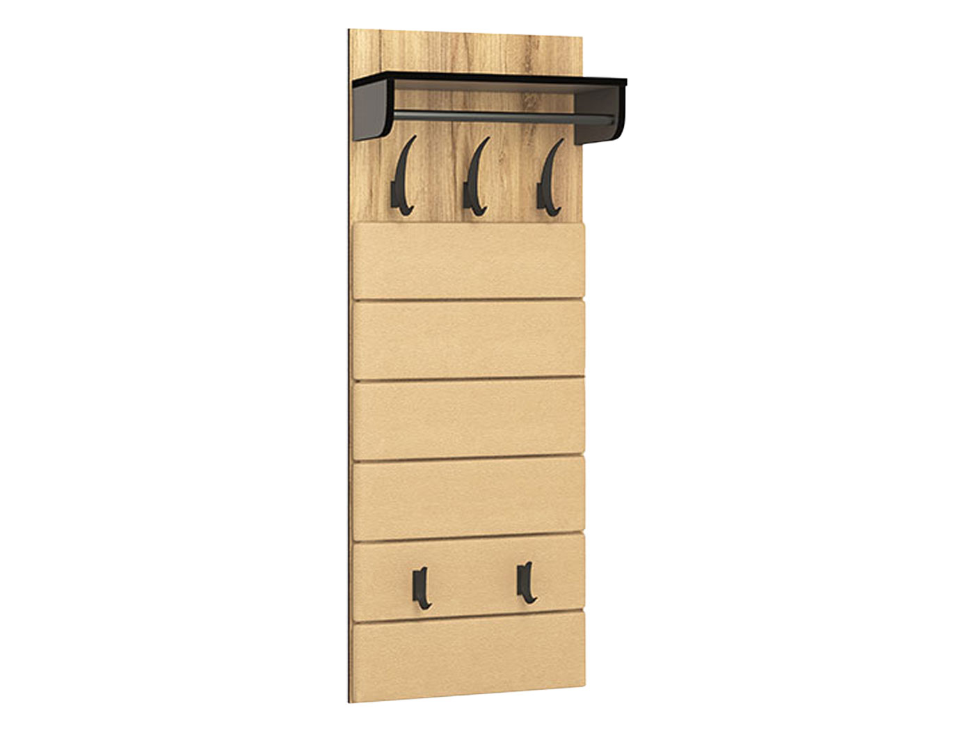 Настенная вешалка Ольга Софт с мягким элементом добавит тепла и уюта в интерьер прихожей. Штанга для плечиков и крючки для одежды под ней позволят аккуратно разместить повседневные предметы гардероба. На нижние крючки удобно вешать сумки и рюкзаки.