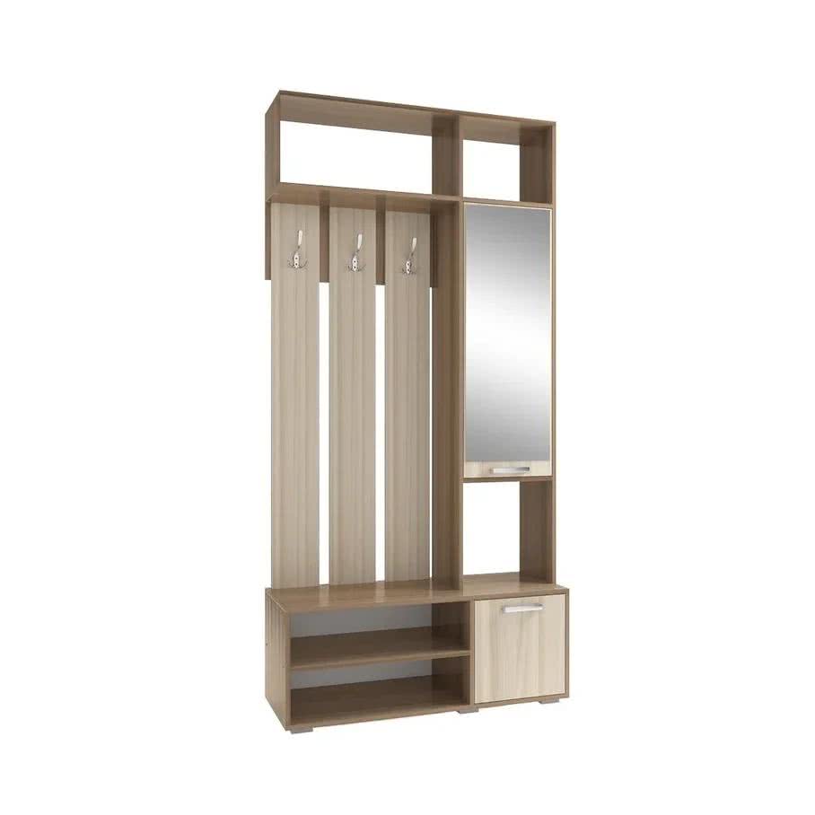 Модель оборудована зеркалом, вешалкой для одежды, полкой для головных уборов, различными полками для вещей, тумбами для обуви.