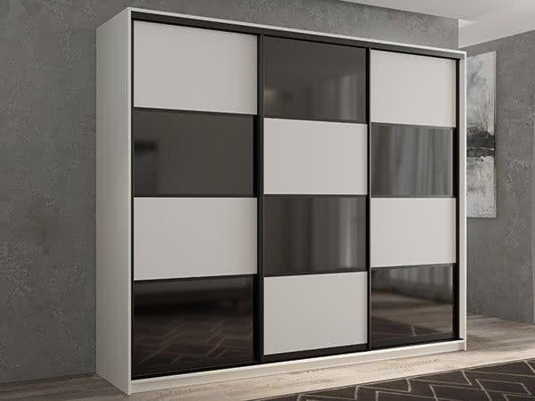 - Три раздвижные двери обеспечивают удобный доступ к содержимому и экономят пространство в комнате.