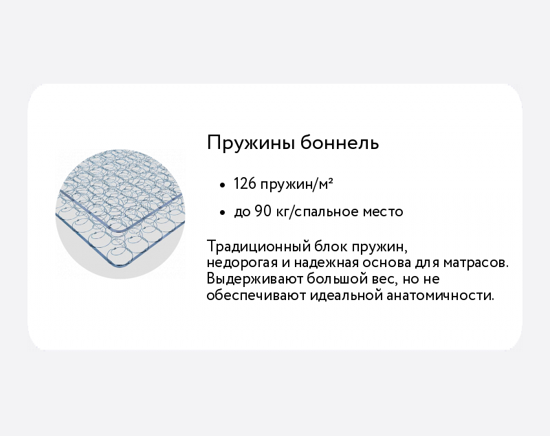 - Зависимый пружинный блок Боннель (126 шт/м2);