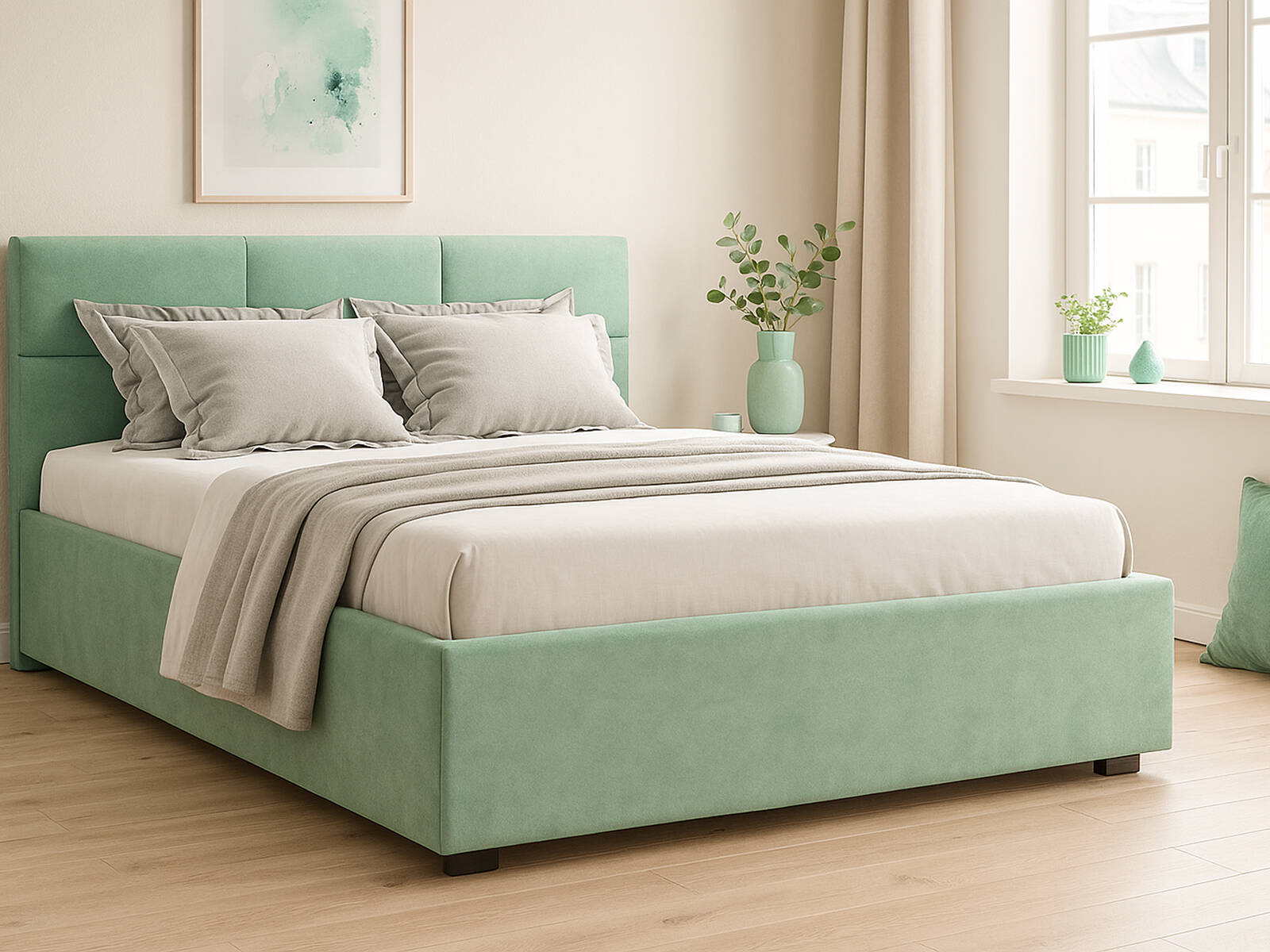 Кровать Bolsena отлично сочетается с прикроватными тумбами, лаконичными светильниками и текстилем в мягких оттенках. Для дополнительного уюта используйте декоративные подушки, пледы или ковры в пастельных тонах. В короб под кроватью удобно хранить сезонное бельё, пледы, коробки или корзины с вещами — это поможет поддерживать порядок в спальне.