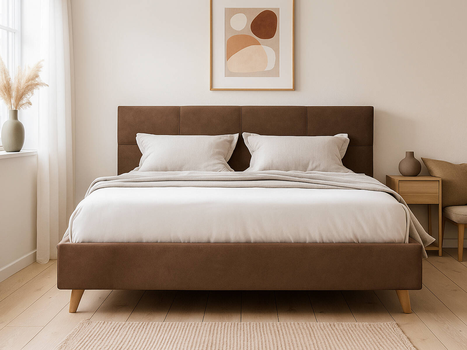 - Модель гармонирует с прикроватными тумбами на деревянных ножках, мягкими коврами, светлыми текстилями и декоративными подушками.