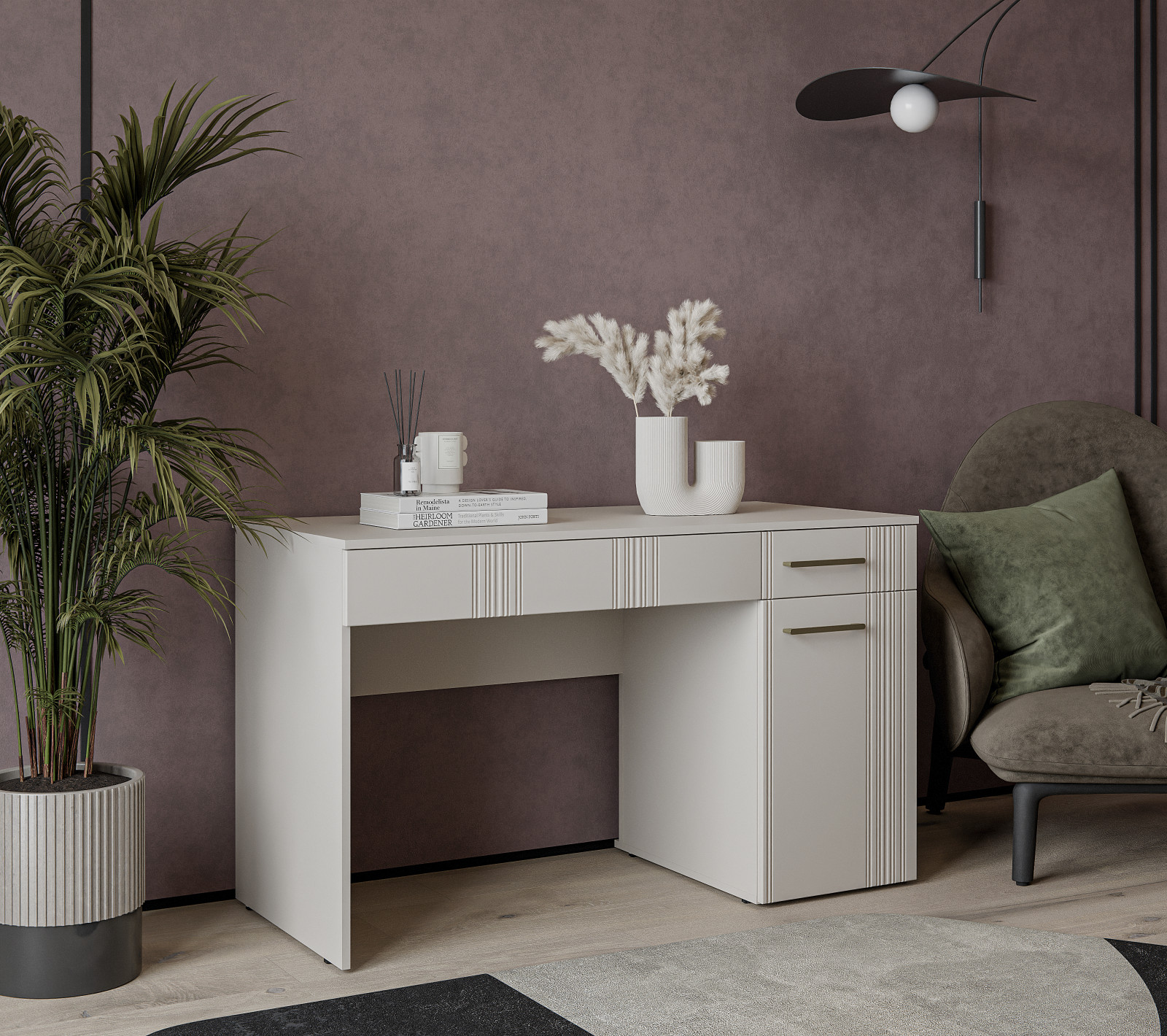 Стол письменный БРВ Бетти 1D2S — современное и функциональное решение для домашнего кабинета, детской или рабочей зоны в гостиной. Благодаря лаконичному дизайну с фрезерованными фасадами и нейтральному светлому тону стол гармонично впишется в скандинавский, современный или минималистичный интерьер. Компактные размеры делают его удобным даже для небольших помещений.