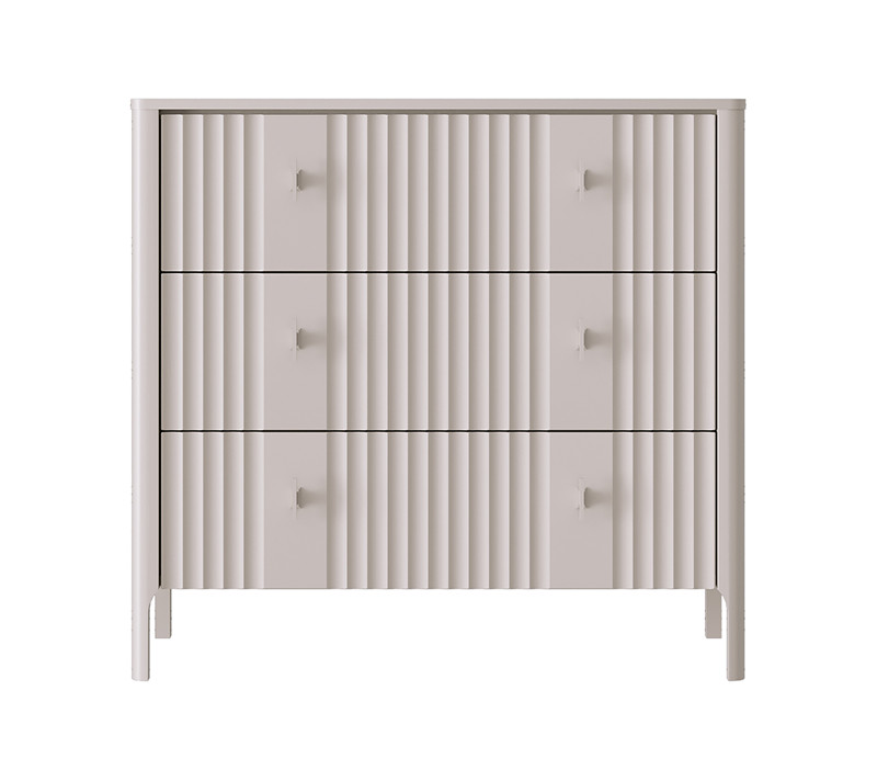 Материал: корпус - ЛДСП, фасад - МДФ с фрезеровкой, задняя стенка - ХДФ, ручки - металл, опоры - МДФ с фетровым подпятником.