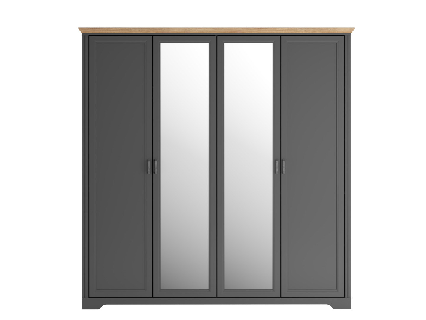 Шкаф BRW Jasmin SZF4D — это вместительный четырехдверный шкаф с зеркалами, который станет стильным решением для хранения вещей в спальне, гостиной или прихожей. Элегантный фасад в глубоких темных тонах с аккуратной декоративной рамкой гармонично сочетается с контрастной верхней планкой под дерево, а зеркальные вставки визуально увеличивают пространство и делают интерьер светлее.