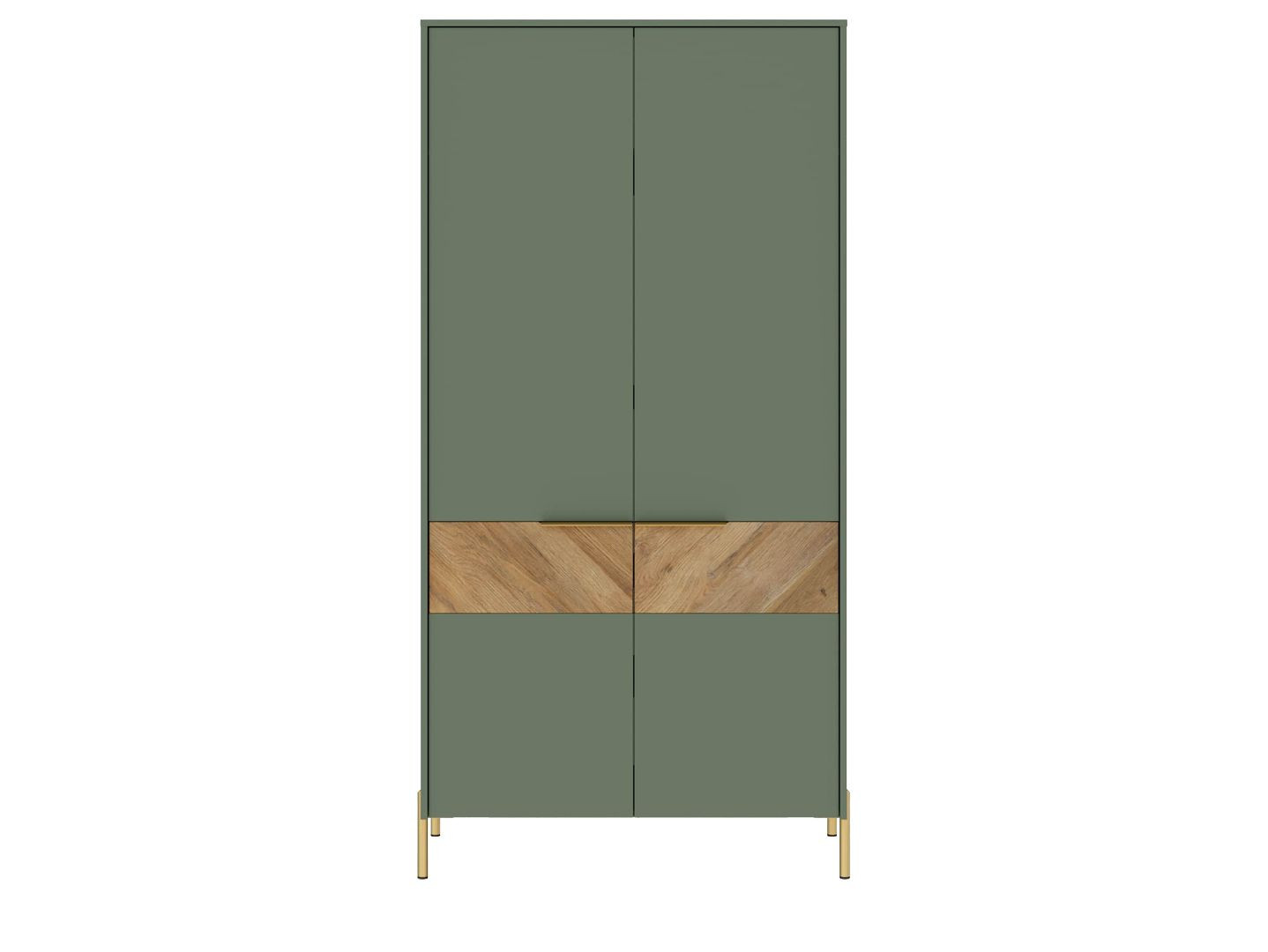 Металлические опоры и ручки придают конструкции прочность и современный вид. Шкаф выполнен в привлекательном сочетании зеленого цвета и дуба вотан, что делает его универсальным элементом для любого интерьера.