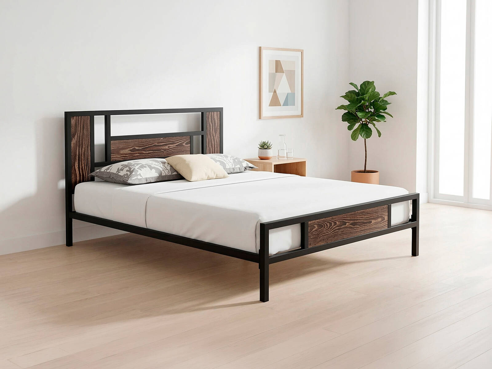 Материал: каркас – металл; изголовье и изножье – массив дерева.