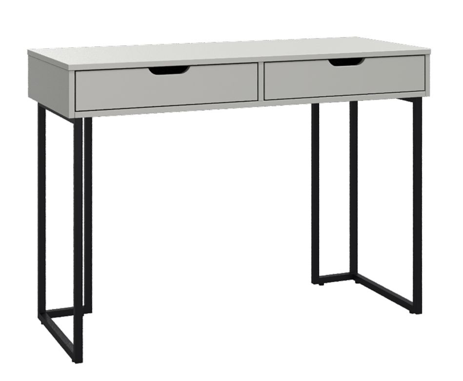 Туалетный столик Корвет Даллас 80-707Ш, серый — современное решение для спальни, гардеробной или стильной прихожей. Лаконичный дизайн с прямыми линиями и элегантной серой столешницей гармонично сочетается с черными металлическими опорами, придавая столу легкость и актуальный характер в духе минимализма и лофт.