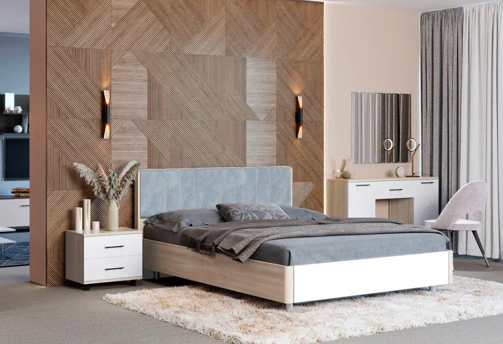 Благодаря размеру спального места 160х200 см кровать подойдёт для комфортного сна одного или двух человек. Корпус выполнен из ЛДСП и МДФ, что обеспечивает прочность и долговечность. В коллекции доступно множество цветовых решений — вы легко подберёте оптимальный вариант для своей спальни или гостевой комнаты.