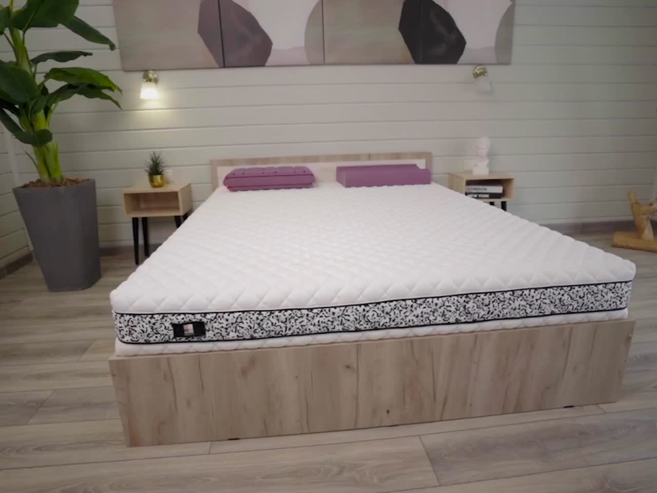 Матрас First имеет среднюю толщину и подходит к большинству типов кроватей.
