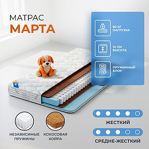 Преимущество матраса Марта — он имеет 2 различные по жесткости стороны: жесткую и средне-жесткую.