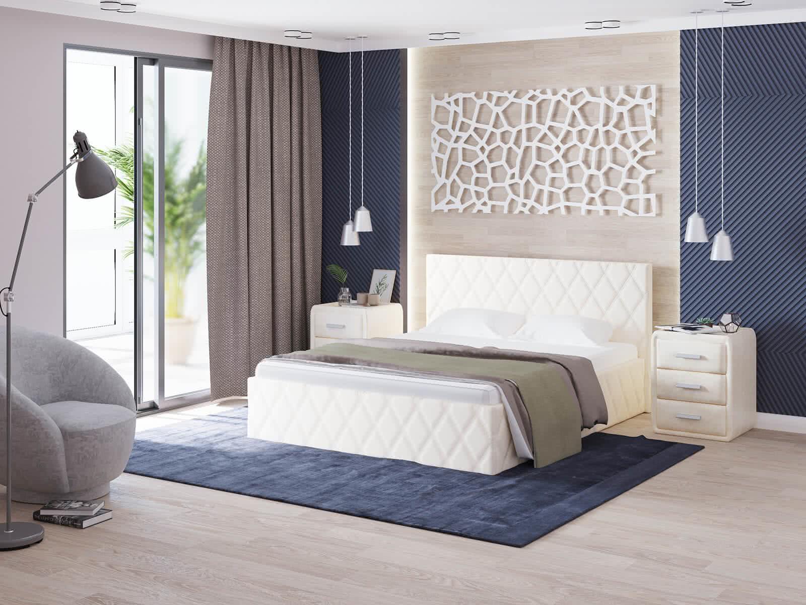 Отличительная особенность кровати Fresco в стежке чехла по всему периметру. Геометрический рисунок стежки — ромбы — очень актуальный тренд на европейском рынке, а для российского это пока новое направление. Модель идеально подойдет тем, кто ценит экономичность, простоту и универсальность в дизайне. Это открывает безграничные варианты обстановки в спальне.