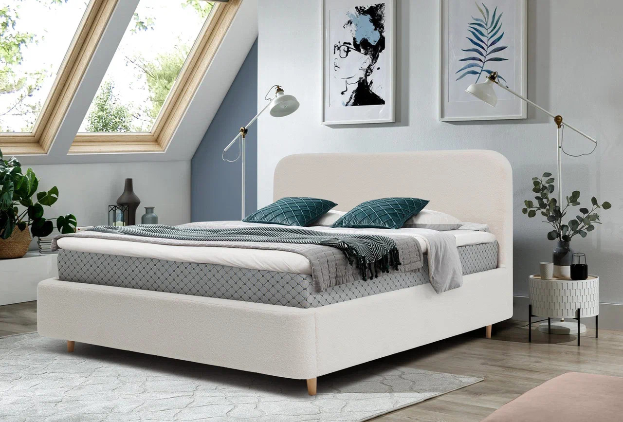 Кровать Сон Сервис Fly ПМ — это современное решение для стильной спальни, сочетающее лаконичный дизайн и удобство эксплуатации. Мягкое изголовье с закруглёнными краями и обивка из экомеха Barni с приятным «кудрявым» ворсом создают атмосферу уюта и комфорта. Светлый оттенок и натуральная фактура ножек придают кровати легкость, делая её универсальным выбором для интерьеров в скандинавском, современном или минималистичном стиле.